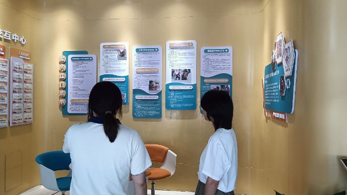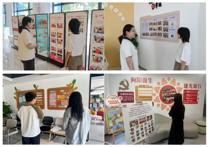 實踐團首先參觀的是越城區助聯體的三級服務網絡體系。工作人員向我們介紹道,助聯體以“黨建統領、供需銜接、社會參與”為原則,構建了“區—鎮街—村社”三級服務網絡,從而實現了社會救助資源的全域覆蓋與精準觸達。這一體系以區級樞紐平臺為“大腦”,通過數據整合與政策調度,統籌全區救助資源;鎮街服務站充當“神經中樞”,負責需求對接與項目協調;村社服務點則如同“神經末梢”,直接扎根社區,確保幫扶措施落地到戶。