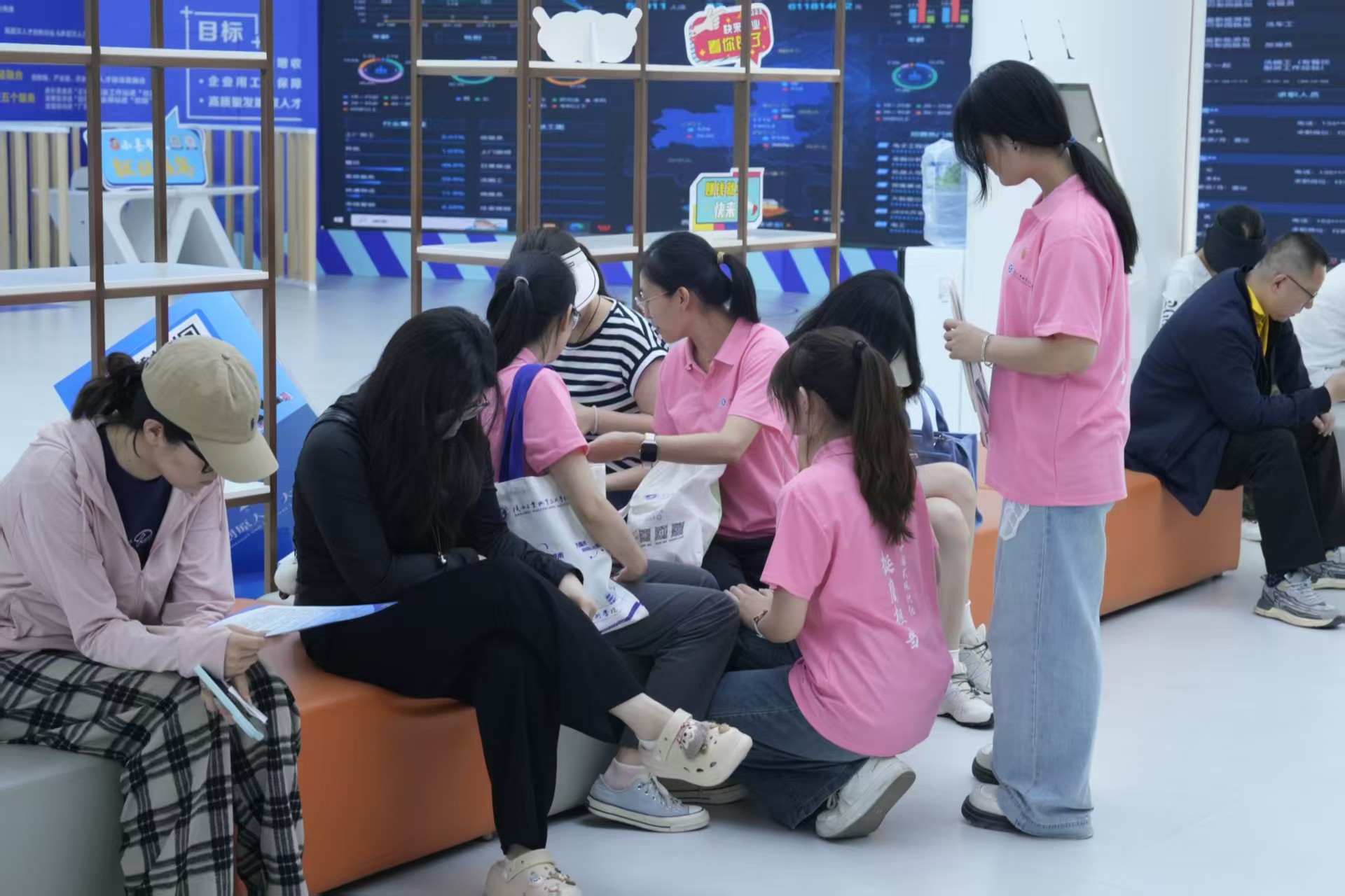 圖為秦創原人才大市場講解員為團隊成員企業招聘等窗口。陳奕澤 供圖
