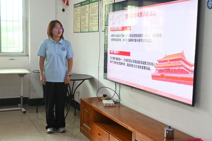 一場 “石榴講堂”在福利院電視廳開講,團隊成員為進行民族團結,講述溫情民族故事,用宣傳片喚醒一個個鮮活的記憶。宣講結束后,團隊成員們與老人們交談,聆聽他們的團結故事。一位羌族的奶奶為我們生動的講述了,多年前在天災面前各族人民齊心協力共患難的團結事例。