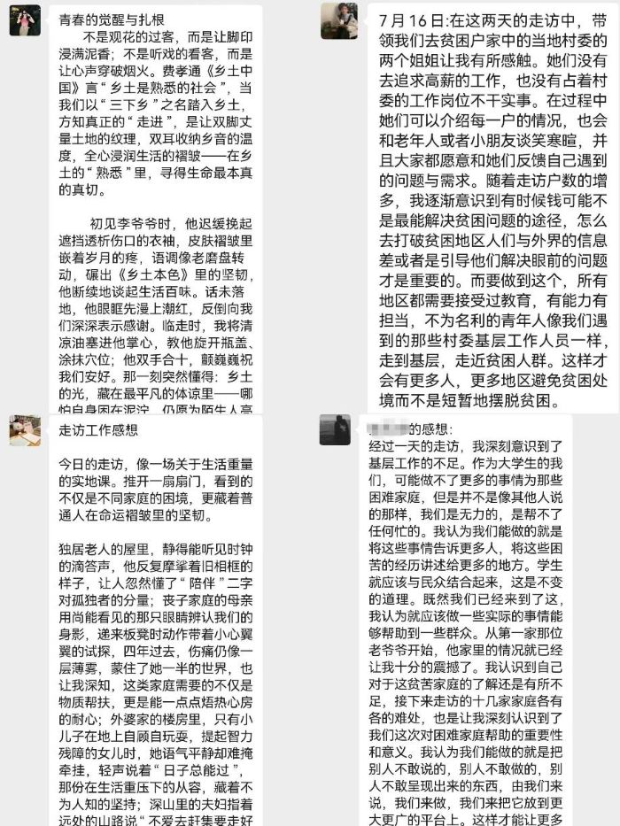 團隊成員周雨彤: 這些讓我明白,基層工作從來不是簡單的“完成走訪指標”。每一戶的故事都獨一無二,每一份需求都具體而微。我們能做的,或許不是立刻改變所有困境,但至少可以讓他們知道“有人在惦記”——給獨居老人多留一個聯系電話,幫喪子家庭對接一次心理輔導,為多孩家庭爭取一點政策傾斜,替深山住戶反映一次交通難題。