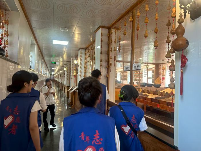 而在以古法釀醋聞名的工廠,“夏伏曬、冬撈冰”的傳統工藝讓隊員們駐足驚嘆。透過透明參觀通道,蒸糧的熱氣、發酵的菌群、熏醅的焦香、淋醋的清亮、陳釀的醇厚一一呈現,五大工序的匠心傳承令人震撼。管理學院的隊員們則聚焦產品市場競爭力,在產品展廳仔細研究醋產品的品類布局——從面向大眾的平價餐飲醋,到主打健康的保健醋,再到用于禮贈的高端禮盒裝,他們結合市場調研數據,與企業負責人圍繞“如何優化產品定位、創新包裝設計、拓展線上銷售渠道”展開熱烈討論,提出諸多切實可行的升級建議。