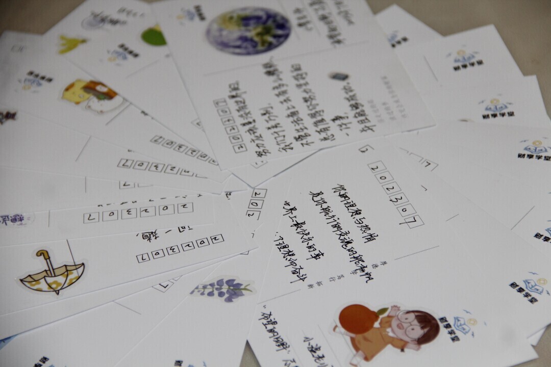 (圖為老師為小朋友們寫的紀念明信片 曾云舒 供圖)