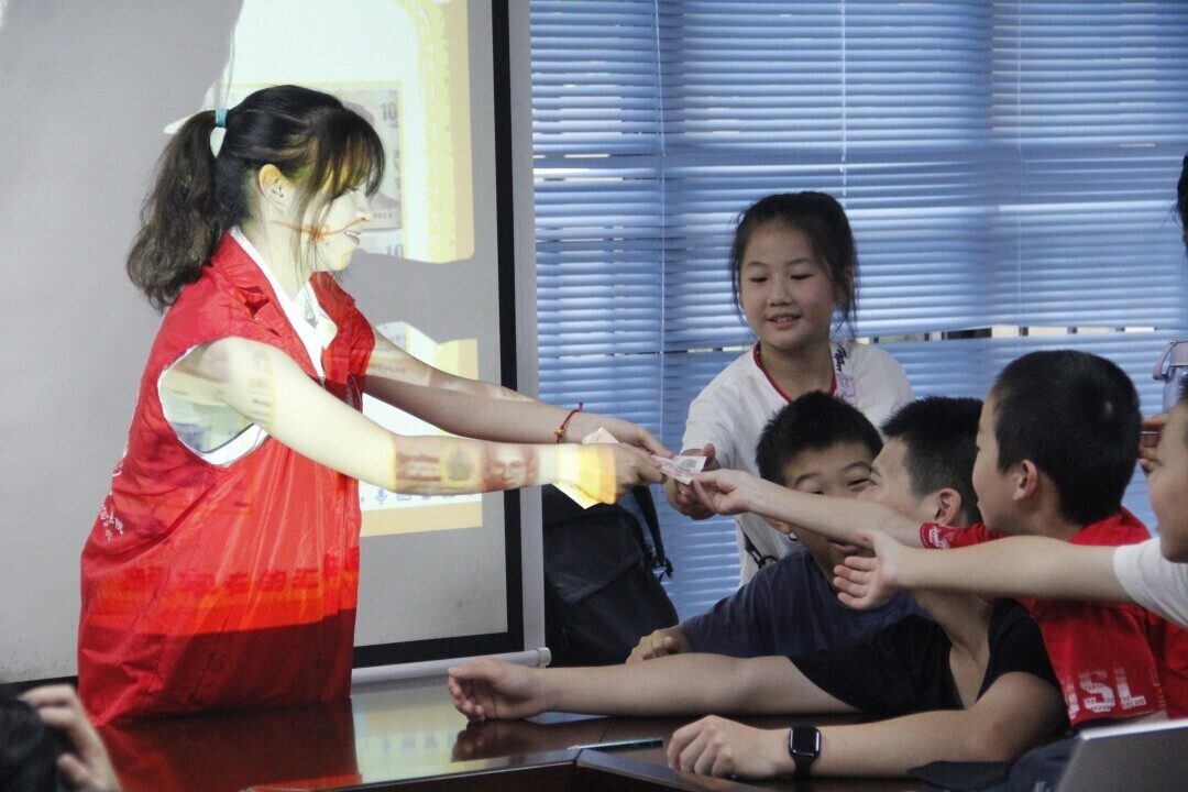 課堂上,團隊成員擔起小老師的重任,通過小朋友們日常生活中的案例引入貨幣、勞動、消費、營銷、供需、匯率、儲蓄與風險等相關知識,由淺入深地講授知識點、構建邏輯鏈、搭建思維框架,一步一步地引導小朋友們進行自主思考,逐步建立并發展小朋友們的財經思維。小朋友們認真聽課,對小老師們的趣味教學內容全神貫注,總是積極回應老師的提問,爭先恐后地舉手搶答,甚至主動向老師提問,要求做出更充分更深入的解答,課堂氛圍十分活躍。那一雙又一雙求知若渴的眼睛、一只又一只高高舉起的手臂,讓小老師們感到尤其欣慰,更發覺自己肩負的責任之重大。