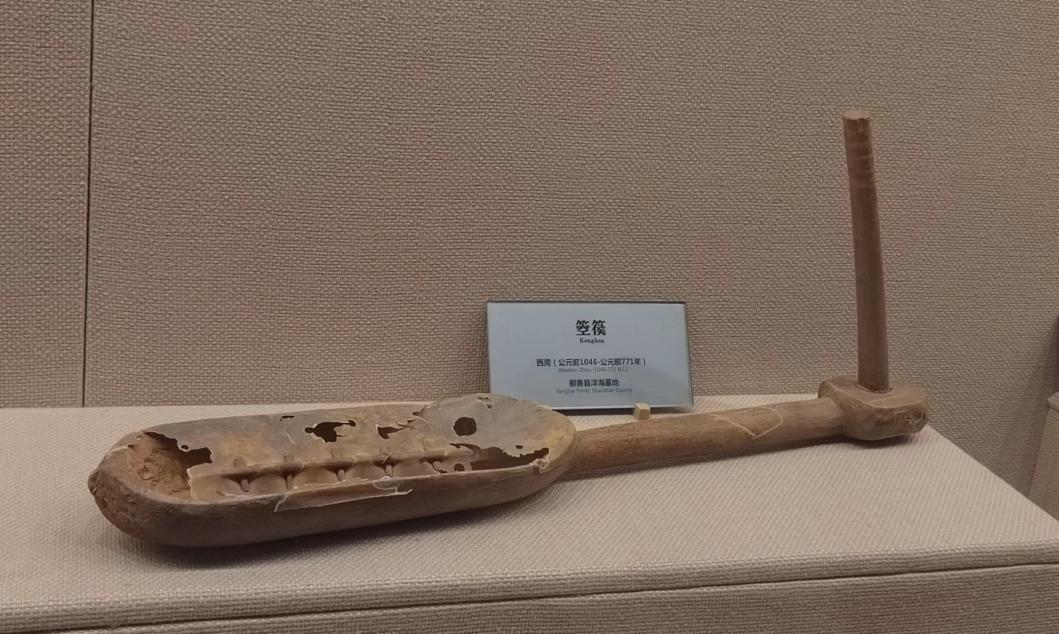 館內展出的木制古代箜篌,有2500年左右的歷史。全身由一整塊木料刻挖而成,包括音箱、頸、弦和弦桿幾部分,弦首有明顯的五道系弦的痕跡。箜篌是一種古代的彈撥樂器,吐魯番先民在舉行重大禮儀,特別是原始宗教活動時使用,后來逐漸失傳。