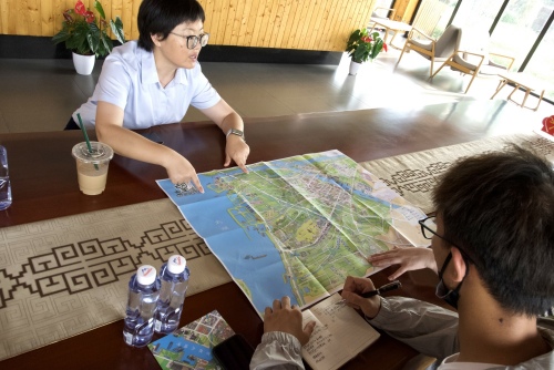 林經理向實踐隊長介紹北太湖旅游度假區建設、農文旅融合發展情況