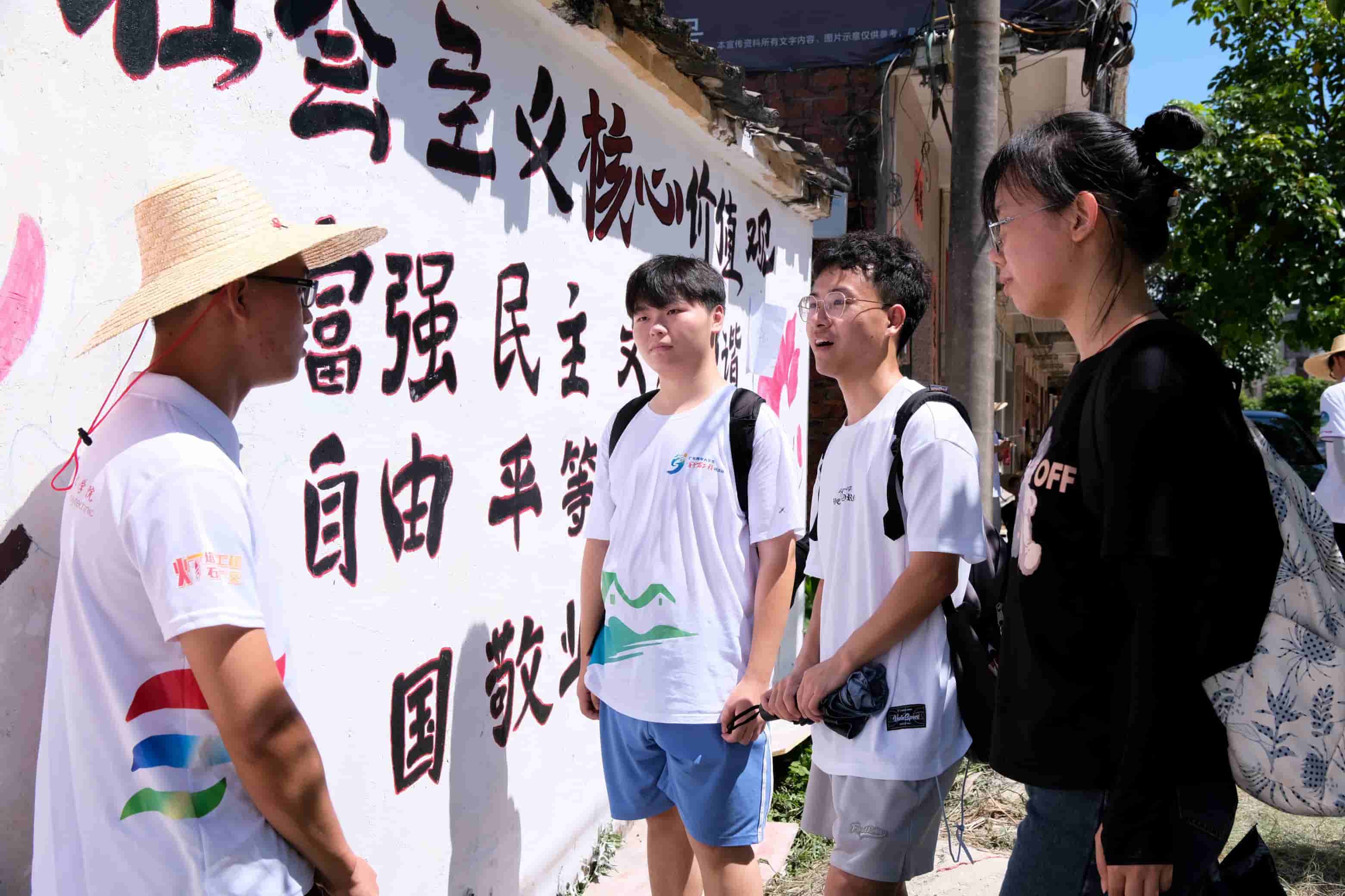 墻繪項目見證陂面鎮(zhèn)多彩生活 隨著交流的深入,團(tuán)隊繼續(xù)投身于一項具有創(chuàng)意與藝術(shù)的墻繪項目中,抵達(dá)墻繪地點(diǎn)之后,團(tuán)隊的繪畫工作逐步推進(jìn),在炎熱的七月天里,他們在陽光下堅持工作,不僅是為了完成墻繪,更是為了將文化與奮斗精神融入這片土地,盡管天氣帶來了些許困難,但憑借著精心的構(gòu)思和團(tuán)隊的默契合作,墻繪的進(jìn)度卻在不知不覺中逐漸加快。墻繪的細(xì)節(jié)之處展現(xiàn)了團(tuán)隊的技藝與用心,吸引了越來越多的行人駐足觀看。他們相信,通過自己的努力,這面墻將不僅僅是一堵靜止的隔離,更是會變得生動而多彩,成為鎮(zhèn)上的一道獨(dú)特風(fēng)景。