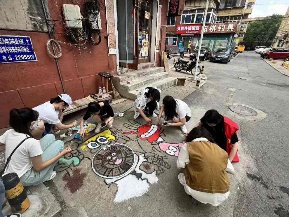 此外,實踐團成員積極參與團區(qū)委組織的大學生下社區(qū)美化環(huán)境志愿服務,進行對老舊小區(qū)的改造,志愿者在井蓋及墻面繪制圖案并填充顏色,充分發(fā)揮青年想象力,讓生活中常見的物品煥發(fā)新的活力,為社區(qū)增添一抹亮色。