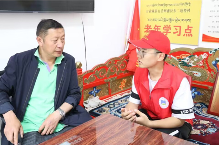圖為志愿隊(duì)對(duì)當(dāng)?shù)孛袼蘩习宓牟稍L。三下鄉(xiāng)網(wǎng)通訊員 張國(guó)悅 供圖