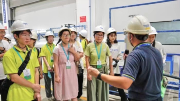 當進入產品生產車間時,產品工程師向實踐隊隊員介紹工程應用案例,嘉戎技術在長期的研究和生產實踐中,不斷進行膜應用相關核心技術的積累,以及膜組件等關鍵生產部件的產品開發和生產工藝優化,通過科技創新、模式創新、業態創新和新舊產業融合的方式,為“綠水青山”和“雙碳目標”貢獻力量。