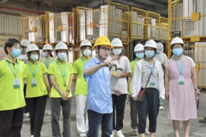 在做好安全防護后,實踐隊隊員跟隨講解員來到處理廠的工作車間,講解員介紹道,公司的流水線生產嚴格遵循各項規定,以綠色產業和低碳技術為基礎進行運作,且嚴格把控水、電和煤的使用,高效回收廢棄電器電子產品,提高廢棄物綜合利用率。