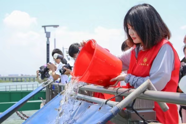 實(shí)踐隊(duì)隊(duì)員參與增殖放流