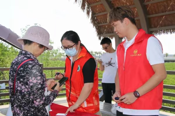 “紅旗紅樹,青馬篤行”實(shí)踐隊(duì)前往廈門市翔安區(qū)下譚尾紅樹林濕地公園協(xié)助開展,帶動(dòng)公眾參與生態(tài)文明建設(shè),踐行生態(tài)文明理念。
