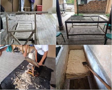 古法造紙工藝:浸泡→蒸皮→踩皮→撿皮→伐皮→踏碓→切番→打漿→曬紙→造好的蔡侯紙