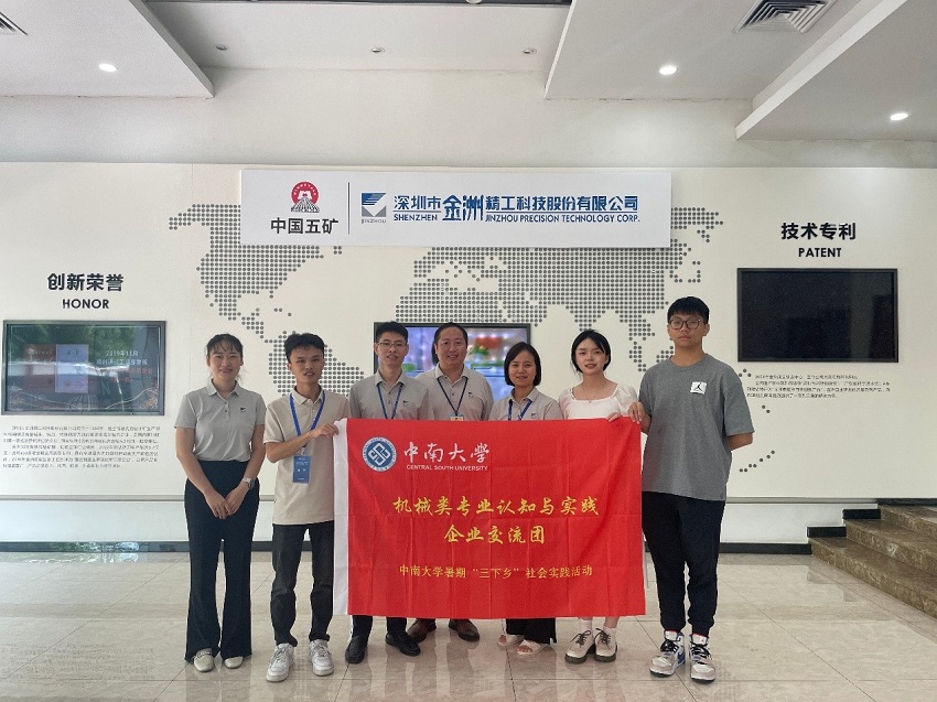 為響應教育部要求理工類院校暑期社會實踐要走向國家重點單位、專精特新企業(yè)的號召,培養(yǎng)大學生“小我融入大我”,引導其走向社會、認識社會,結合專業(yè)特色精準錨定人生發(fā)展方向,8月29日,中南大學機械類專業(yè)認知與實踐企業(yè)交流團來到位于廣東省深圳市的金洲精工科技股份有限公司和廣東省惠州市的豪鵬科技股份有限公司潼湖工業(yè)園。開展以“聚焦專精特新,探訪業(yè)內強企”為主題、“走進科技前沿,調研大灣區(qū)發(fā)展”為目標的社會實踐活動,了解行業(yè)發(fā)展情況。