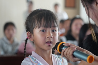 圖為現(xiàn)場的小朋友們回答有關(guān)校園霸凌的問題。(攝/劉賢波)