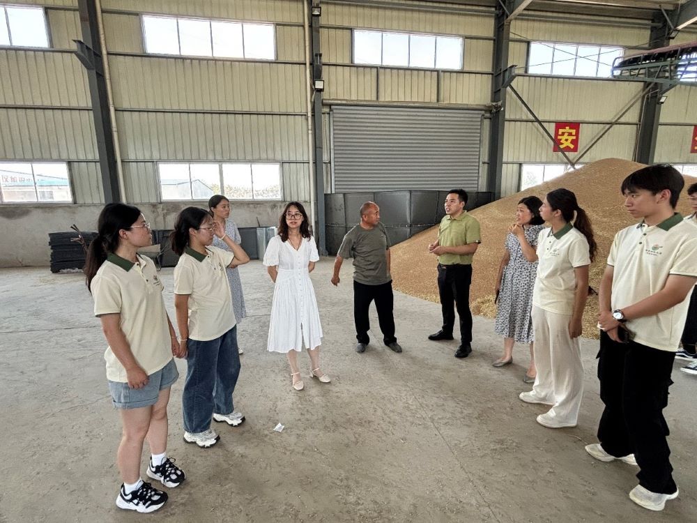 圖為團隊成員聆聽王莊村王書記對廠房機械的介紹。通訊員 俞姝含 攝