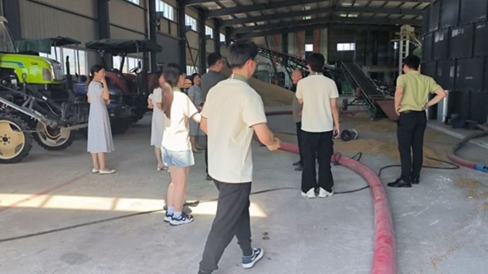 圖為王莊村王書記帶領實踐隊員考察農機廠房和谷倉。通訊員 秦嘉悅 攝
