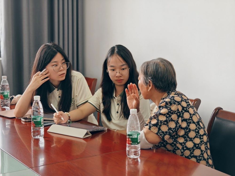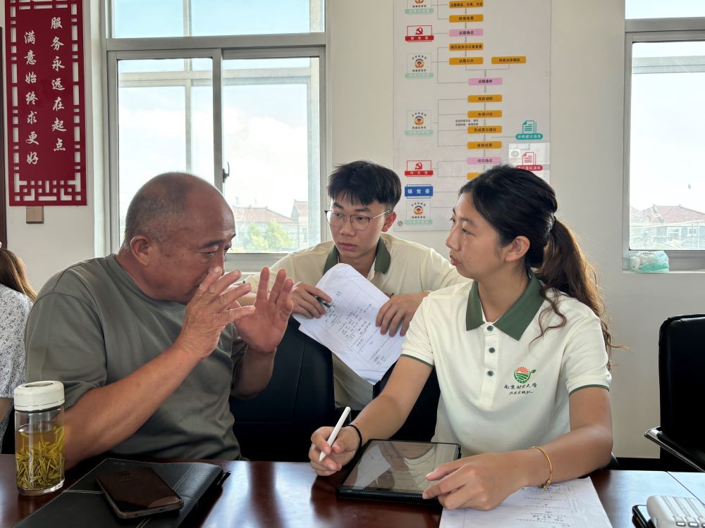 圖為實踐隊員與崔橋村小農戶進行深入訪談。通訊員 朱佳一 攝