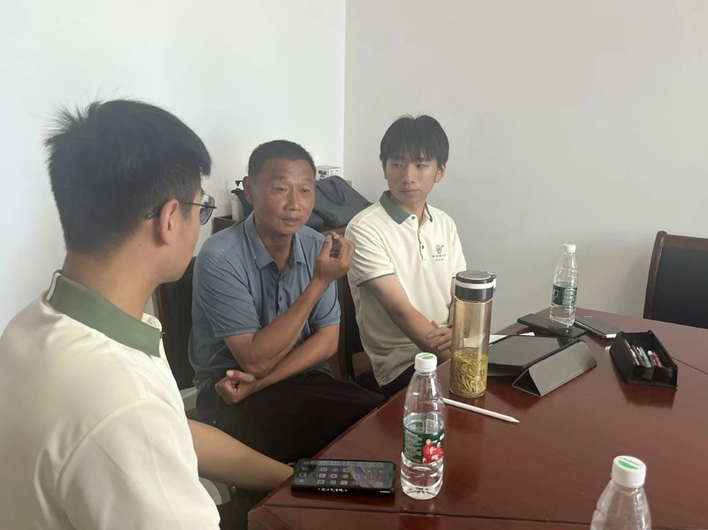 圖為實踐隊員對王莊村種植大戶進行訪談。通訊員 陳世文 攝