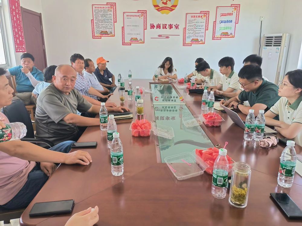 圖為團隊成員與王莊村村干部、農民展開座談會。 通訊員 秦嘉悅 攝