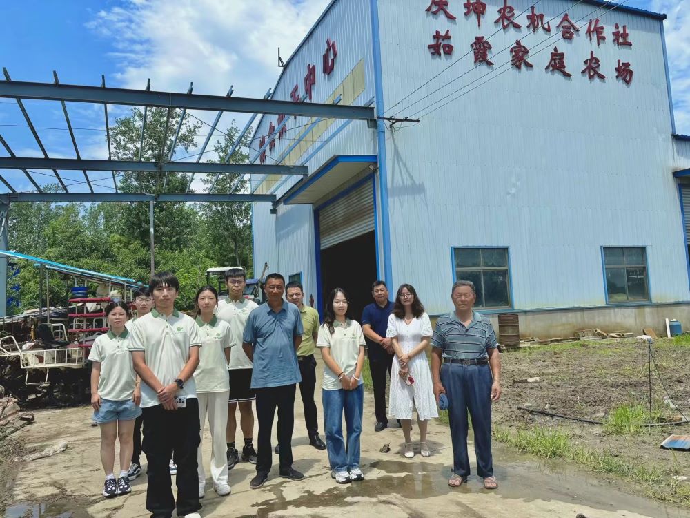 圖為實踐隊員與崔橋村村民在當地農機合作社前的合影。通訊員 俞姝含 攝