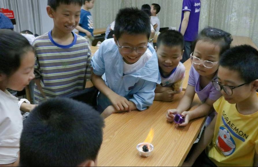 接下來是備受期待的法老之蛇小實驗。這個實驗需要用到白砂糖、小蘇打和酒精等材料。講解員先向小朋友們介紹了實驗的原理和注意事項,然后點燃了混合物。瞬間,一條黑色的“蛇”從混合物中緩緩升起,仿佛法老的神秘力量在顯現。在實驗過程中,實踐團隊的成員們始終陪伴在小朋友們身邊,給予他們耐心的指導和幫助。