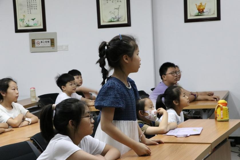 實踐團隊的講解員用PPT為小朋友們講述了大運河的悠久歷史、重要作用以及其所承載的豐富文化內涵。從古代的漕運繁忙到如今的文化傳承。為了讓小朋友們更好地理解大運河文化,講解員還設置了互動提問環節。在我們隊員劉亞文的提問后,小朋友們紛紛舉起小手,踴躍回答。有的小朋友雖然回答得不太準確,但他們的積極參與和勇敢表達贏得了大家的掌聲鼓勵。實踐團隊的成員們耐心地為小朋友們解答問題,引導他們深入思考,進一步加深了對大運河文化的理解。