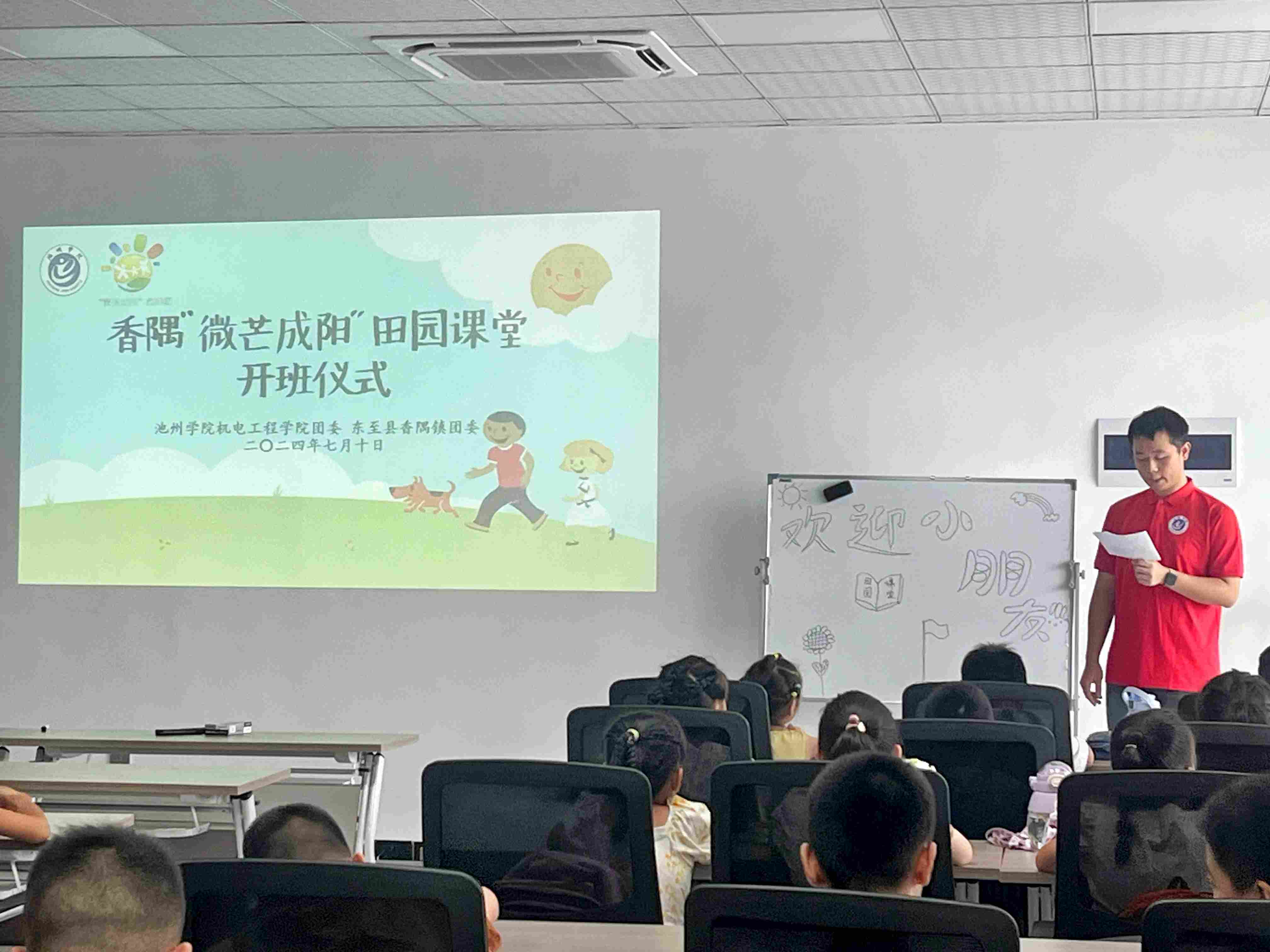 支教團隊隊長首先發表了開班詞,他滿懷深情地闡述了田園課堂的初衷和愿景,鼓勵孩子們在這個特別的課堂中勇敢探索、積極學習、快樂成長。隊長的話語如同夏日微風,輕輕拂過孩子們的心田,激起了他們對未來學習生活的無限期待。