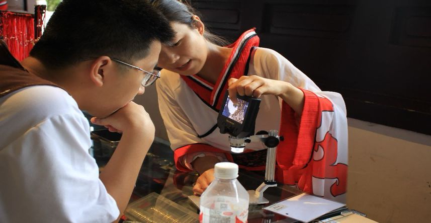 圖為屈原故里工作人員向實踐隊成員講解紀念幣。通訊員 徐梓欣 攝
