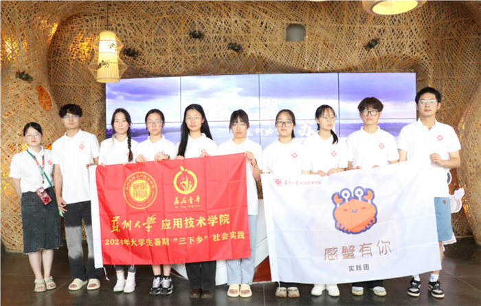 圖為實踐團(tuán)成員在陽澄湖大閘蟹文化館合影。龍美珍 供圖