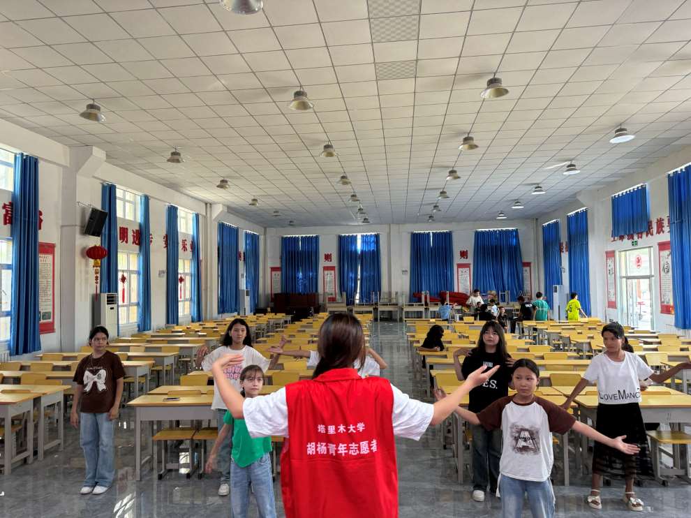 在舞蹈傳授環節,實踐團的成員們教孩子們跳起了歡快的舞蹈。隨著音樂的響起,孩子們一個個興高采烈地跟隨節奏舞動身體,現場充滿了歡聲笑語。通過舞蹈訓練,孩子們不僅鍛煉了身體,增強了體質,還培養了團隊合作精神和藝術修養。實踐團成員們的細心指導和鼓勵,使得每一個孩子都能在舞蹈中找到自信和快樂。