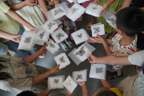 (圖為孩子們進行蝴蝶標本制作及成果展示)