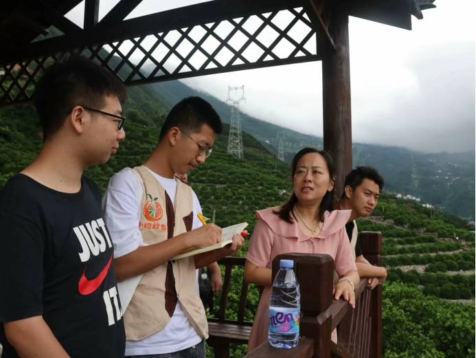 圖為當地果園負責人向實踐隊成員介紹橙園。中國青年網通訊員 柳楊梓訊 攝