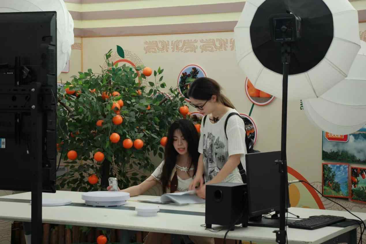 圖為實踐隊隊員模擬臍橙銷售電商直播的場景。 中國青年網通訊員 邵文妹 攝