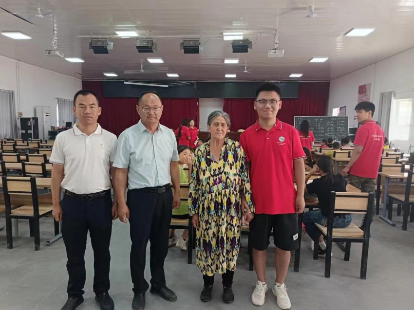 12日上午,十三團第二中學校長王波來到26連視察實踐團工作,給團隊成員就教學方法、管理方法等提出建議。并敦促學生們好好學習,珍惜這次提升成績的機會。與王波校長同行的還有一位維吾爾族老奶奶,近年來她每年都給十三團第二中學捐款1萬,用實際行動支持團場教育事業。
