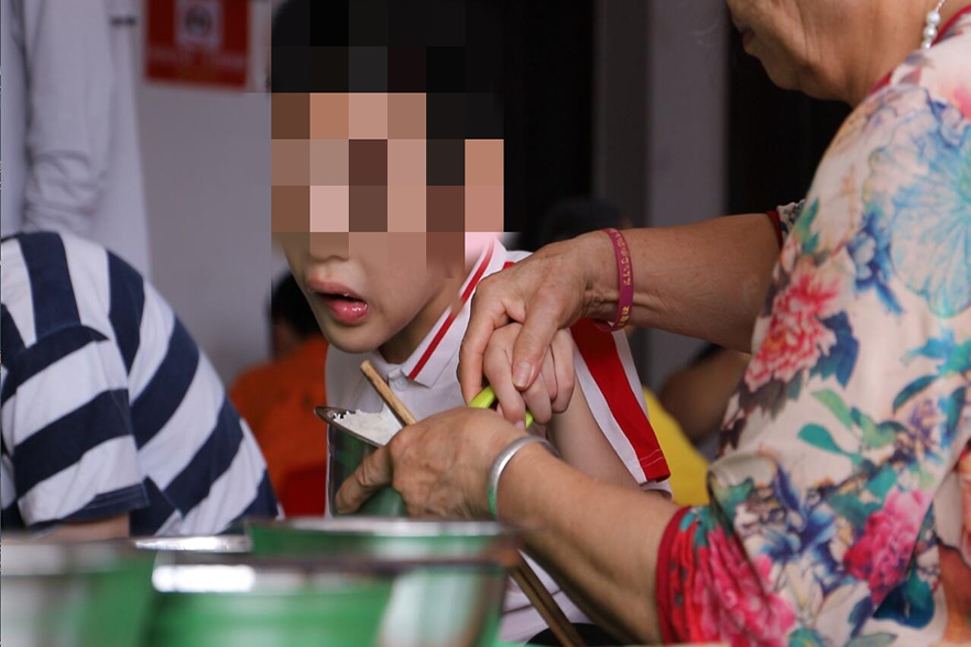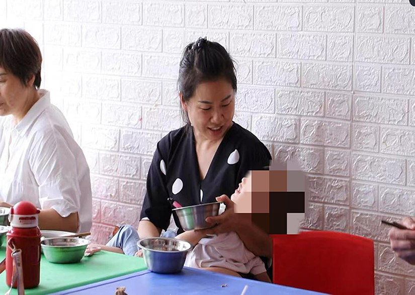 ▲“慢天使愛(ài)心屋”媽媽抱著孩子進(jìn)行用餐。記者 文濤攝