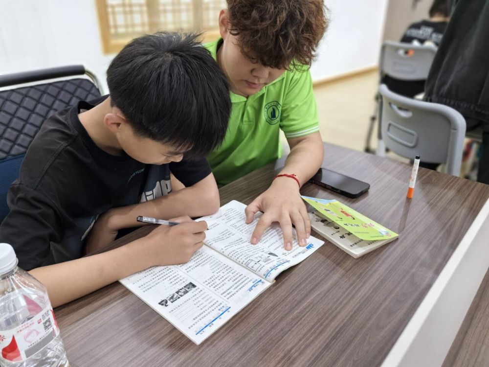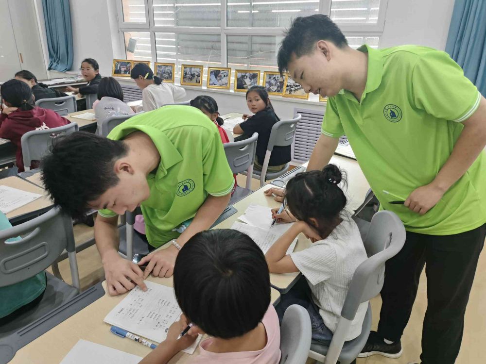 在解答的每一個(gè)環(huán)節(jié),實(shí)踐隊(duì)員們始終將培養(yǎng)學(xué)生的思維能力與獨(dú)立解題能力置于首位。隊(duì)員們積極引導(dǎo)學(xué)生進(jìn)行深入思考,鼓勵(lì)其大膽提問,對于每一次的進(jìn)步與努力,都給予了及時(shí)的肯定和鼓勵(lì)。在面對錯(cuò)誤時(shí),隊(duì)員們并未直接揭示答案,而是巧妙地引導(dǎo)學(xué)生重新審視問題,自主探尋解決之道,從而強(qiáng)化了學(xué)生自主學(xué)習(xí)和解決問題的意識(shí)。同時(shí),實(shí)踐隊(duì)隊(duì)員還積極組織同學(xué)們進(jìn)行互助學(xué)習(xí),鼓勵(lì)大家攜手合作,共同攻克難題,這不僅為學(xué)生們提供了更多的學(xué)習(xí)參考,更鍛煉了孩子們的團(tuán)隊(duì)合作與溝通交流能力。