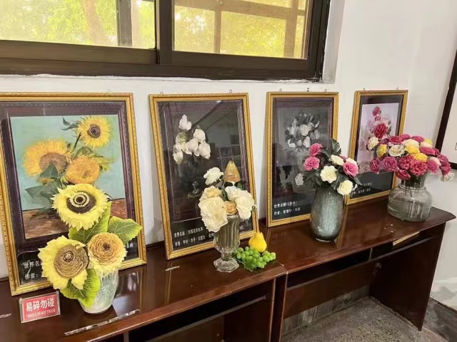 徐海霞帶領實踐隊成員們來到煎餅花制造間,向成員們展示了她親手制作的手工煎餅花和煎餅畫。用煎餅仿制的世界名畫《向日葵》和《玫瑰》、五彩斑斕的煎餅花籃和花束,以及各式各樣的煎餅風景畫,讓團隊成員們驚嘆不已,也正是這一件件優美的手工藝品,使沂蒙煎餅這一傳統美食走向全國,乃至世界。
