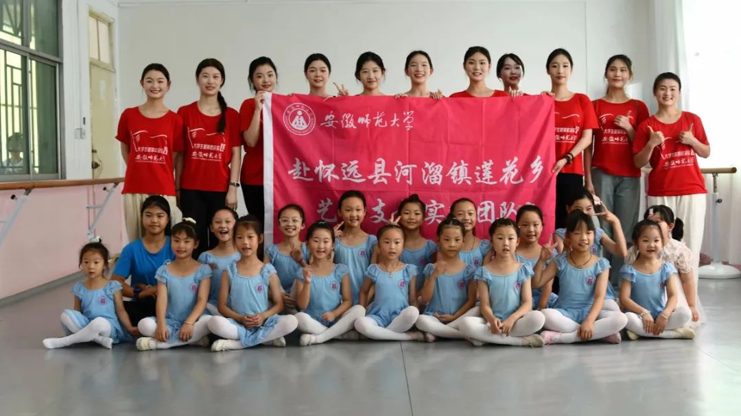 為貫徹落實(shí)專業(yè)特長賦能和美鄉(xiāng)村,推動(dòng)花鼓燈的傳承與發(fā)展,安徽師范大學(xué)音樂學(xué)院赴懷遠(yuǎn)縣河溜鎮(zhèn)蓮花鄉(xiāng)藝術(shù)支教實(shí)踐團(tuán)隊(duì)來到了花鼓燈非遺傳承基地成功展開了為期7天的支教與交流活動(dòng),為鄉(xiāng)村孩子帶來美的熏陶與專業(yè)的指導(dǎo),進(jìn)一步推進(jìn)了鄉(xiāng)村舞蹈教育的規(guī)范化與多元化。