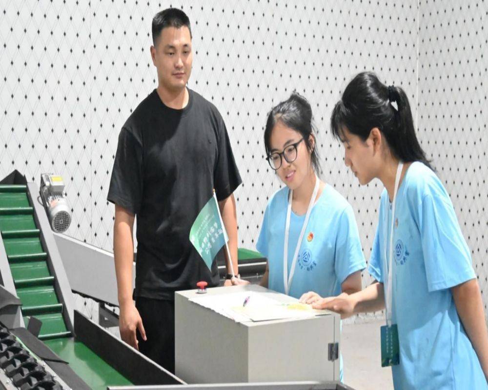 公共管理學(xué)院“‘青’耘慈溪,‘春’耕有我”實(shí)踐支隊(duì)操作蜜梨篩選機(jī)器