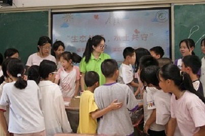 實踐團隊來到長汀,首先參觀了汀江國家濕地公園與水土保持科教園,深刻感受到了長汀經過幾十年的努力,在水土保持生態治理方面取得了豐碩成果。隨后,在龍巖市東埔小學,他們學校的環境和教學設備,了解了當地的辦學特色和文化傳統,實踐團隊與師生們進行了深入的交流互動。團隊成員張鈺怡作為宣講員以“生態共榮,水土共守”為主題,從水土流失和水土保持兩個方面進行了暑期“三下鄉”生態文明宣講。