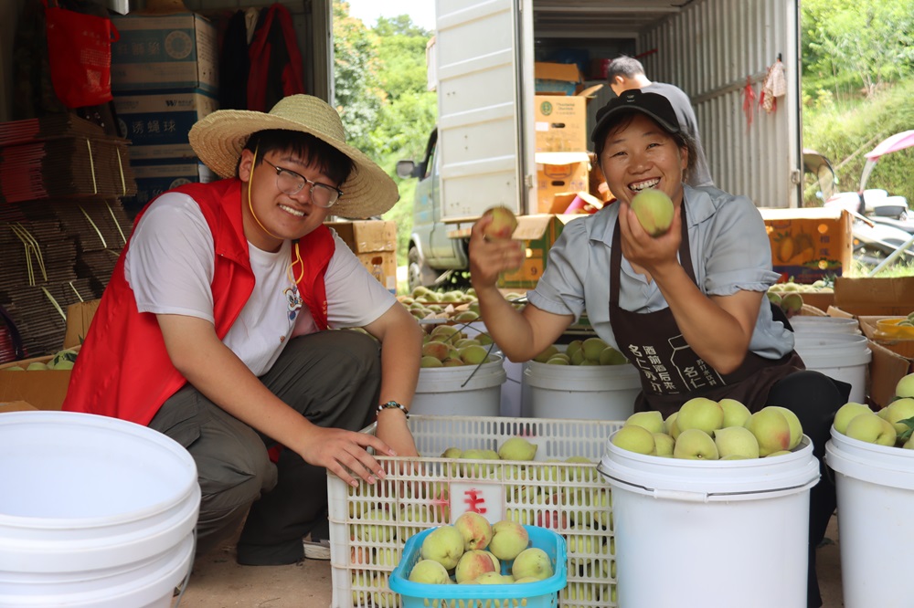 在郭福娣的指導(dǎo)下,隊員們學(xué)習(xí)到了判斷桃子成熟的標(biāo)志以及采摘的手法,迅速開展了桃子采摘工作。桃子摘來后要進行選果,郭福娣為隊員們詳細(xì)演示了選桃方法,太小的不行,碰傷的、有爛斑的難保存,郭福娣告誡大家要精心挑選,爭取把最好的桃子選出來賣給客戶。“干我們這行,誠信是最重要的,人家花了這么多錢,咱們也要把最好的果子發(fā)給人家。”隊員們按照郭福娣的方法認(rèn)真選果、包裝,大家紛紛表示,深刻體會到了脆甜的鷹嘴桃背后果農(nóng)的辛苦付出,也充分認(rèn)識到了鄉(xiāng)村振興與“助農(nóng)興農(nóng)”密不可分。