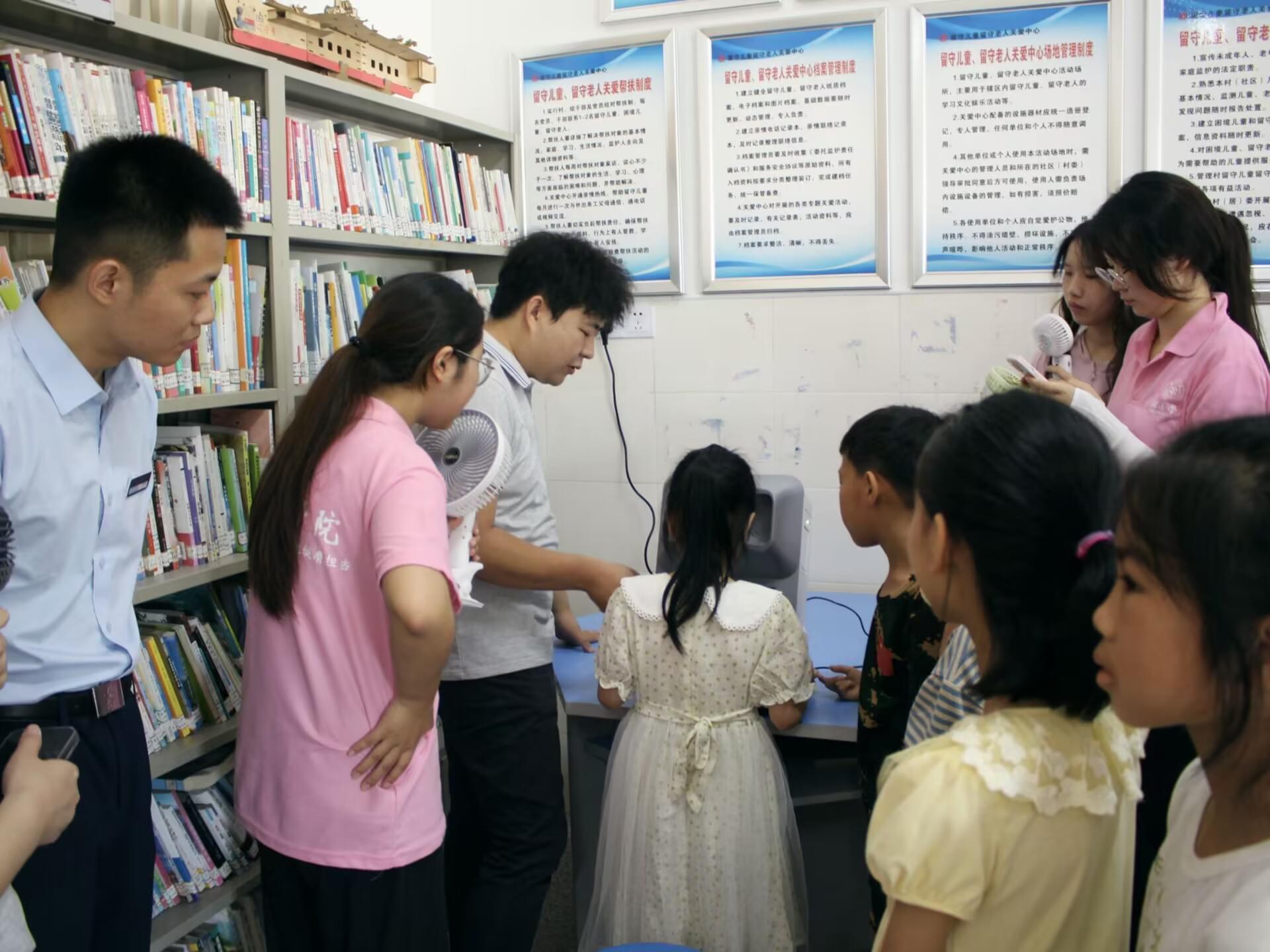 愛爾眼科志愿者們攜帶先進的醫療設備,為當地兒童、居民提供了全面的眼部健康檢查。視力檢查現場,湘南學院實踐隊隊員們熱情引導,耐心解答,確保每一位前來咨詢的居民都能得到專業的指導和幫助。