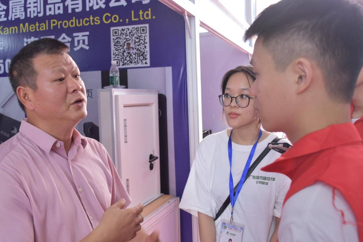 為了解金利鎮五金產業的技術創新動態,挖掘產業升級與人才振興互相融合的深層動力,2024年7月10日,廣東技術師范大學計算機科學學院“星筠共鄉約”實踐團走進肇慶市高要區金利鎮“第二屆中國(金利)五金建博會”現場,與多位參會公司負責人等進行深入交流,就技術創新、人才需求和可持續發展等方面展開熱烈討論。