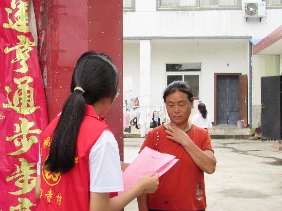 在防溺水宣傳環節,實踐隊員結合實際案例,向村民們詳細講解了溺水的危險和預防措施。并且強調,暑期是溺水事故的高發期,孩子們在沒有成人陪同的情況下切勿靠近河邊、池塘等危險水域。在宣傳過程中,通過居住在池塘邊的居民了解到,村里有兩個小孩在暑假時會在家中老人的陪同下到池塘中游泳,實踐隊員通過居民提供的地址,找到了小孩及家長,著重對他們進行了防溺水宣傳教育。