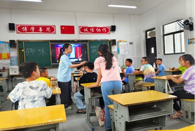 7月17日消息(通訊員 嚴煜 楊雨欣 蘭自強 董俊逸 向倩柯韻萌)武昌理工學院第十八屆“大手牽小手”云夢書韻志愿服務隊于7月17日在云夢縣曙光小學開展以“趣味英語,動漫同行”為主題的特色課程。此次活動旨在讓學生在動畫和游戲中體驗學習英語的樂趣。青年志愿者楊雨欣擔任課程的主講人。