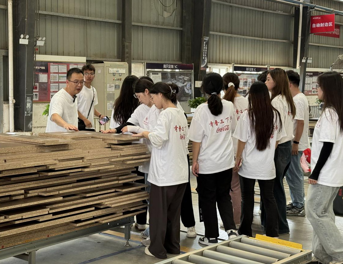 全體隊員首先前往參觀了葉集經開區板材展廳,并從宣傳片中了解到經開區的新型產業模式。隨后,在安徽中至信家居展館,了解家居產業成長歷史和發展機遇,深入了解家具行業的市場趨勢、消費者需求以及競爭格局,學習市場營銷策略;全體隊員還走進科凡智造家居的生產車間,實地觀察工人們從分揀到熱壓的工作過程。同時隊員前往街邊商鋪走訪居民,分發收集調研問卷,向居民詢問家具板材的環保性以及對家具板材產業未來的發展期望等想法,了解居民對產業轉型狀況。