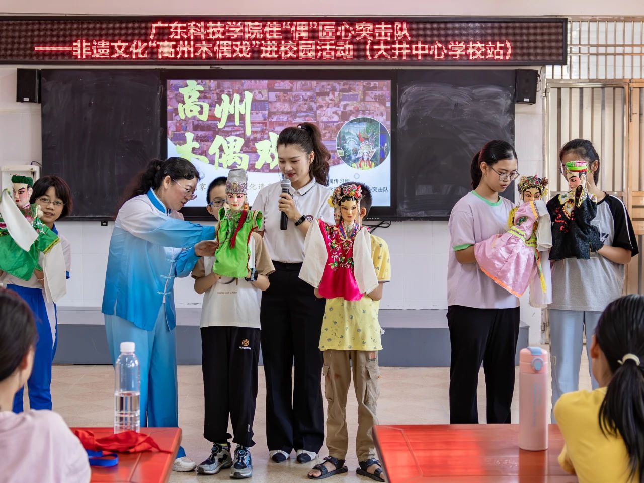 為響應廣東省"百千萬工程”的號召,積極宣傳非遺文化。佳“偶”匠心突擊隊在高州市大井鎮中心學校為孩子們宣傳高州木偶戲文化,共啟文化傳承新程。在校方引領下,佳“偶”匠心突擊隊成員踏入校園,熱情推廣木偶戲,旨在為孩子們播下傳統藝術的種子,讓高州木偶戲綻放絢麗的文化光彩。