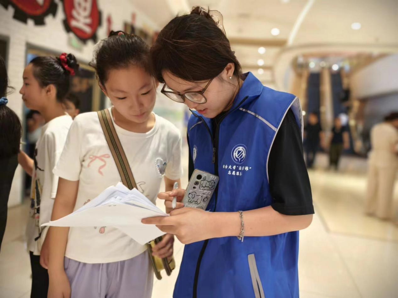 (圖為實(shí)踐隊(duì)成員在大悅城為消費(fèi)者普及幫信罪 “法盾防詐”實(shí)踐隊(duì) 曲乘歌 供圖)