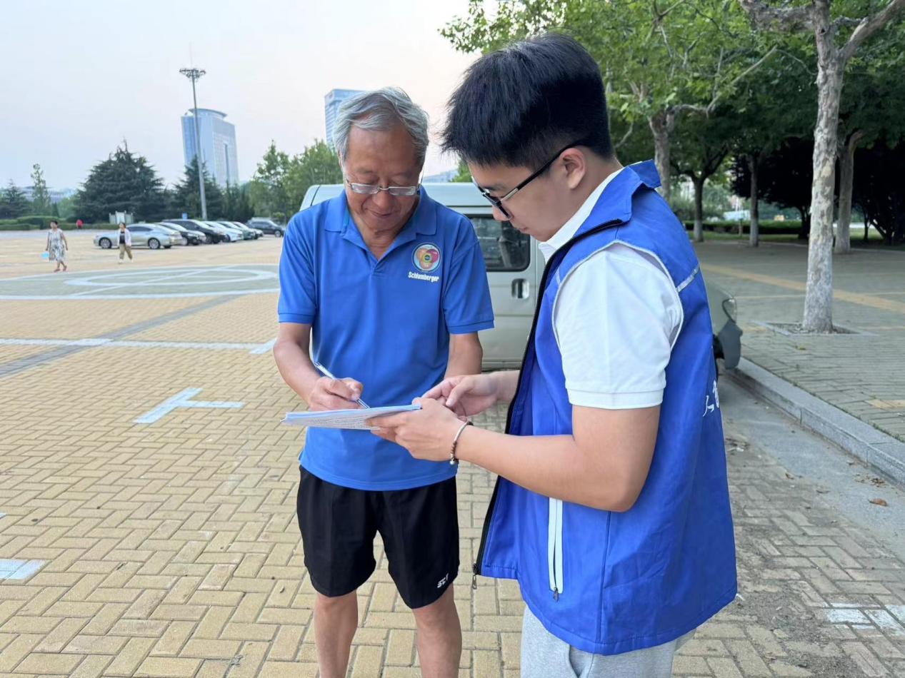 (圖為實(shí)踐隊(duì)成員向社區(qū)居民發(fā)放調(diào)查問(wèn)卷 “法盾防詐”實(shí)踐隊(duì) 李坤洋供圖)